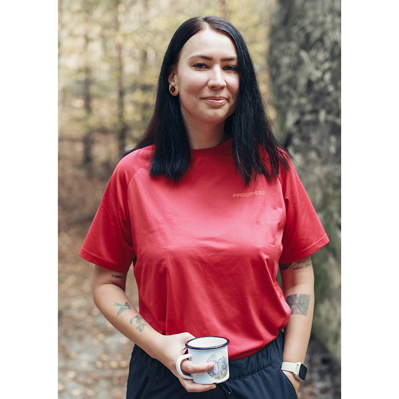 Byť skončilo teplé období, triko mi doma nezůstává ležet. Nosím ho teď i jako spodní vrstvu, protože jsem si ho prostě a jednoduše zamilovala. Jedno se ale změnilo. Ve sluncem projasněných dnech jsem tohle triko ráda doplňovala o sluneční brýle ENDURO. Ty už teď, prozatím, leží uschované ve skříni, ale věřím, že na ně znovu přijde řada. Jsou to moje druhé brýle od PROGRESSu a zatím tedy vyhrávají na plné čáře. Baví mě jejich zajímavý design, ale také funkčnost, kterou pro mě představuje nastavitelný nosník a ventilační systém v horní části zrcadlových skel. Brýle prostě vypadají skvěle a zároveň jsou funkční a stoprocentně ochrání vaše oči před ostrým světlem a UV zářením.