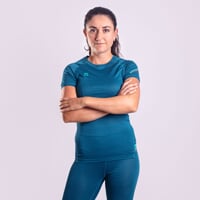 Das Damen-Funktions-T-Shirt TX NKRZ ist aus weichem, sehr angenehm zu berührendem, leichtem Material gefertigt, das mit der technischen Komponente Grafen angereichert ist. Dabei handelt es sich um ein innovatives Material, das Kohlenstoffatome enthält, die ihm eine außergewöhnliche Festigkeit verleihen, einen optimalen Wärmetransport, eine ideale Thermoregulierung und UV-Beständigkeit gewährleisten, das Wachstum von Bakterien und Körpergeruch verhindern und sogar Hausstaubmilben abwehren. Dank seiner Zusammensetzung sorgt das Material auch für eine schnelle Trocknung. Das Shirt ist mit Aktivnähten genäht, die dem Produkt bis zu viermal elastischere Nähte als herkömmliche Nähte verleihen. Im Achselbereich befinden sich laserperforierte Löcher für eine bessere Belüftung. Der bequeme Schnitt sitzt perfekt. Dank seiner außergewöhnlichen Eigenschaften dient das Shirt als ideale erste Schicht, die bei jeder sportlichen Aktivität für Ihren Komfort sorgt.