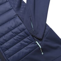 Die VESNA LADY Damen-Hybrid-Reitjacke ist aus einer Kombination von zwei Materialien gefertigt. Die Ärmel und Seitenteile bestehen aus einem dehnbaren Polyesterstrick mit Mikrofleece auf der Innenseite, der nicht nur perfekt vor Kälte schützt, sondern auch Schweiß schnell nach außen transportiert und maximalen Komfort und uneingeschränkte Bewegungsfreiheit garantiert. Die vorderen und hinteren gesteppten Isoliereinsätze sind mit einer 3M™ Thinsulate™ Markenwattierung gefüllt. Dabei handelt es sich um eine sehr leichte, isolierende Mikrofaser, die die Körperwärme effektiv speichert und gleichzeitig überschüssige Feuchtigkeit abtransportiert und so hervorragende Wärmeisolationseigenschaften bietet. Die Jacke verfügt über einen Kordelzug am unteren Saum, mit dem sich der Umfang leicht anpassen lässt. Zusammen mit den elastischen Ärmelbündchen verhindert er Wärmeverluste und hilft, die Wärme am Körper zu halten. Die Jacke hat eine abnehmbare, im Umfang verstellbare Kapuze und zwei seitliche Reißverschlusstaschen. Das schlichte Design, die bequeme Passform und die hervorragenden Wärmeisolationseigenschaften machen die Jacke ideal für das tägliche Training und regelmäßige Fahrten in der Natur bei kaltem Wetter.