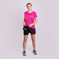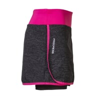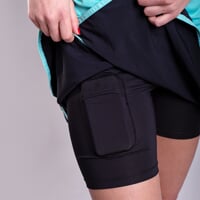 Women's ALERTA sports skirt with inner elastic shorts is made of a very comfortable, breathable, quick-drying material. The skirt has a comfortable wide rubber at the waist. The inner shorts are sewn with flat seams, which guarantee maximum comfort when moving. On the right side is a shaped slit for comfortable move. There is a pocket on the right short of the shorts, which is hidden under the skirt. The skirt is suitable for running, in-line skating, fitness or tennis.