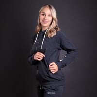 Women's bamboo hoodie ANGELA is made of a mixture of bamboo and cotton. Bamboo fiber gives the product an extremely pleasant feeling to the touch and in addition has natural antibacterial properties that guarantee resistance to odor even when worn for a long time. Bamboo also offers excellent thermoregulatory properties, warming or cooling exactly according to the needs of the human body. Thanks to these properties, the material is suitable for year-round wear. The hoodie has a adjustable hood and two side zip pockets. The looser, perfectly fitting cut and simple classic design guarantee a comfortable feeling and a stylish look during all sports activities as well as during everyday wear.