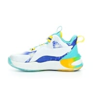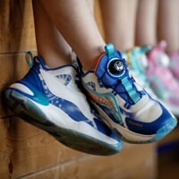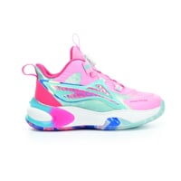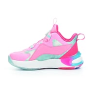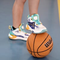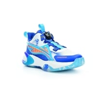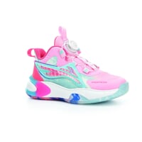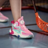 Children's sports shoes JUNIOR BASKETBALL with innovative fastening wheel technology with a rope instead of classic laces. The wheel makes it easy to put on and take off, saving time and effort and keeping your feet in place, eliminating the problem of loose laces and providing better stability and support during a variety of sports activities. The shoes are designed to be easy to slip in without the use of hands thanks to the unique design of the raised, reinforced slip-on heel.
