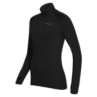 Women's zipneck jacket TISPA ZIP MERINO is made of branded technical material TECNOSTRETCH by the Italian manufacturer PONTETORTO, which ideally meets the requirements of the second functional layer. This great material is light, smooth on the outside and durable, combed on the inside and fluffy. In addition, it is perfectly functional. It guarantees high elasticity, maximum freedom of movement, excellent thermal insulation and fast drying. Flat seams ensure wearing comfort. In this new version, the 100% recycled polyester is enriched with merino wool, thanks to which you get an even warmer second layer, with the added value of merino wool, which warms and cools exactly according to the current needs of the human body, resists odors even when worn for a long time and warms, even if is damp.