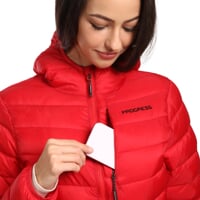 Dámska prešívaná bunda ALASKA s kapucňou vás ochráni pred chladom a vetrom a udrží vás v teple aj v tom najchladnejšom počasí. Bunda je vyrobená z vetruvzdorného materiálu, vyplnená značkovou výplňou 3M™ Thinsulate™. Ide o veľmi ľahké izolačné mikrovlákno, ktoré dokáže účinne zadržiavať telesné teplo a zároveň odvádzať prebytočnú vlhkosť, čím poskytuje vynikajúce tepelnoizolačné vlastnosti. Na spodnom okraji nájdete sťahovaciu šnúrku, ktorá zabraňuje úniku tepla a umožňuje jednoduché nastavenie obvodu. Bunda má dve bočné vrecká a náprsné vrecko na zips a možno ju ľahko zbaliť do vnútorného vrecka, takže sa ľahko prenáša a v batohu zaberá minimum miesta. Samozrejmosťou sú reflexné prvky. Vďaka týmto funkčným vlastnostiam, ale aj vďaka jednoduchému, elegantnému, nadčasovému dizajnu môžete túto bundu využiť pri širokej škále zimných športových aktivít, odporúčame ju najmä na skialpinizmus, lyžovanie alebo zimnú turistiku.