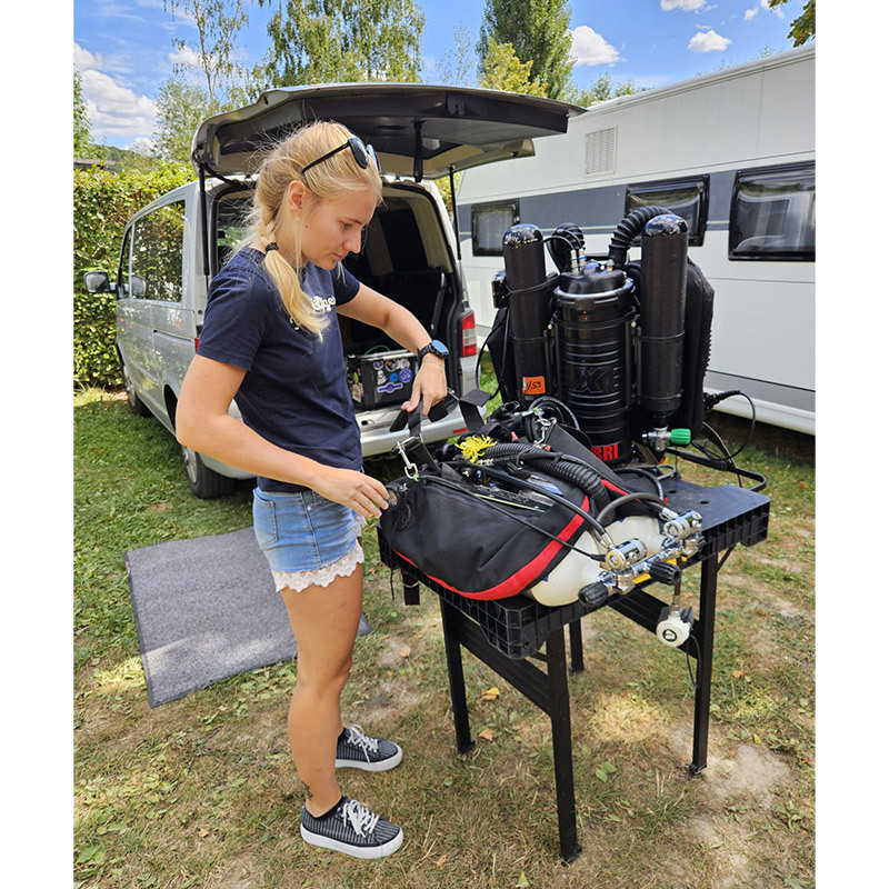 Nedočkavě jsem se oblékla, svojí drahou polovičku, která mi obětavě dělala doprovod, jsem odložila na klobásu a pivo do kempu a hurá pod hladinu!