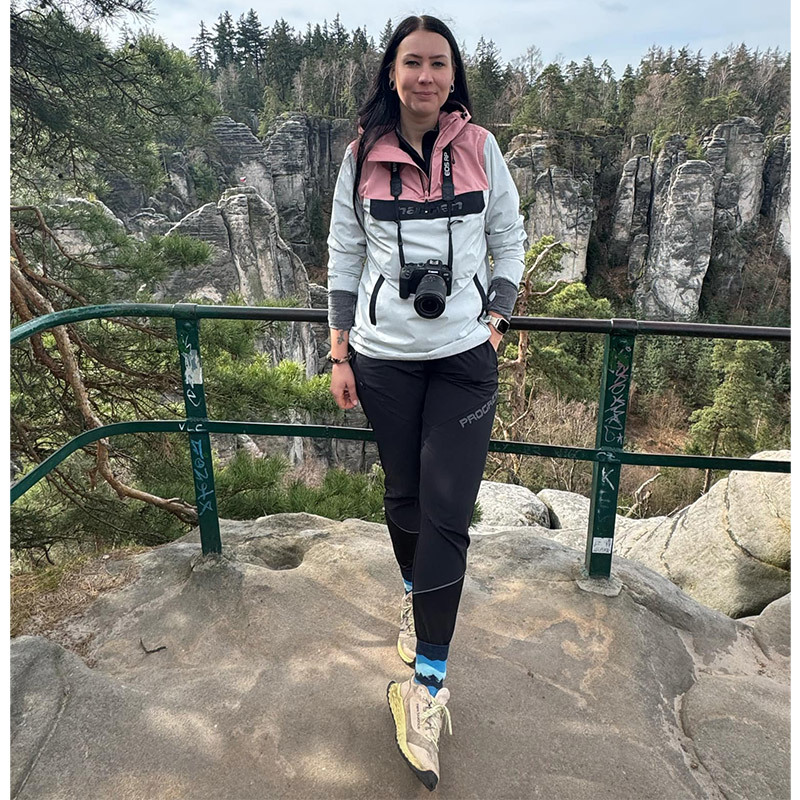 A co je to, co mi na tomhle kousku oblečení tak moc sedlo? Střih! Nenajdete moc outdoorových kalhot, které by nebyly rovně střižené. Tím, že je spodní část těchto kalhot pod koleny a v oblasti lýtek vyrobena z pružného elastického materiálu, jsou zúžené a navozují pocit, že na sobě máte legíny. Vrchní část je naopak vyrobena z lehkého rychleschnoucího materiálu, který je navíc odolný proti větru. A tu odolnost proti větru mohu tedy stoprocentně potvrdit. V kalhotách nebloudím jen svým oblíbeným Českým rájem, ale oblékla jsem je několikrát i na svých cestách v Jeseníkách anebo třeba v Žitavských horách. I horský vítr zvládají v pohodě.